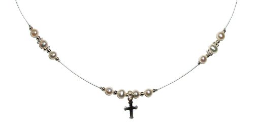 First Comm. Necklace (illusion line) Sterling Silver Girls Childrens Jewelry, freshwater pearl necklace beaded on a clear illusion line with an adorable little silver cross Review